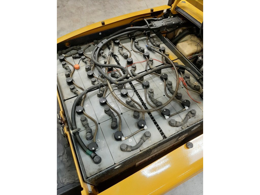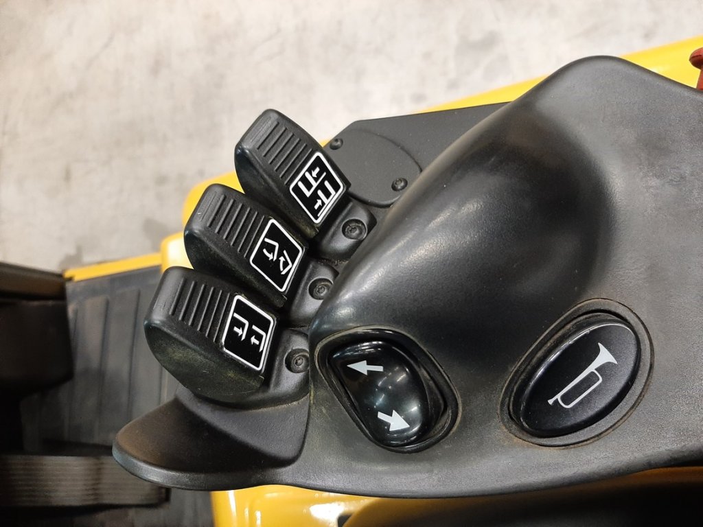 - Příslušenství: 3 hydraulické funkce, ovládání mikropáčky, integrovaný boční posuv, pracovní osvětlení (2+1), maják, 2x blue spot, 2x boční red spot, zpětné panoramatické zrcátko, polokabina - přední sklo se stěračem a krytá střecha, boční výměna baterie, externí nabíječ 8 hod.