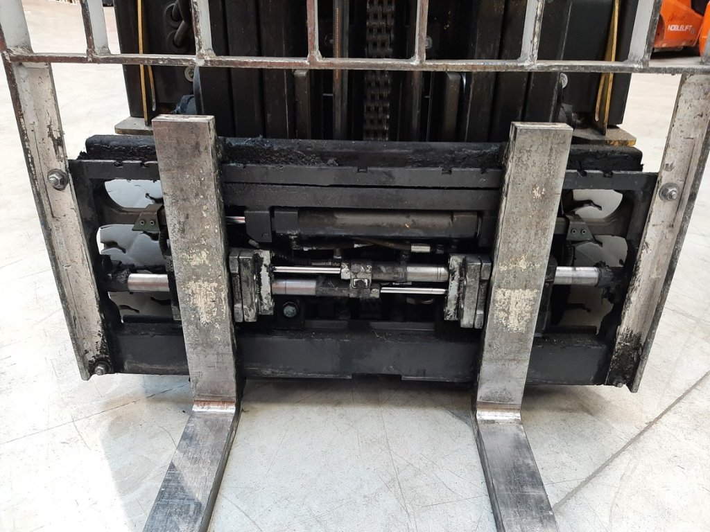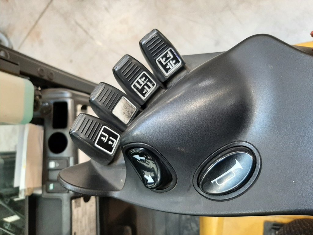 - Příslušenství: 4 hydraulické funkce, ovládání mikropáčky, integrovaný boční posuv s pozicionérem, pracovní osvětlení (2+1), 2x blue spot, LED osvětlení na stožáru, zpětné panoramatické zrcátko, ochranná mříž nákladu, vážící display, polokabina (přední díl se stěračem a ostřikovačem, střešní díl), ochranná střešní mříž, externí nabíječ 8 hod.
