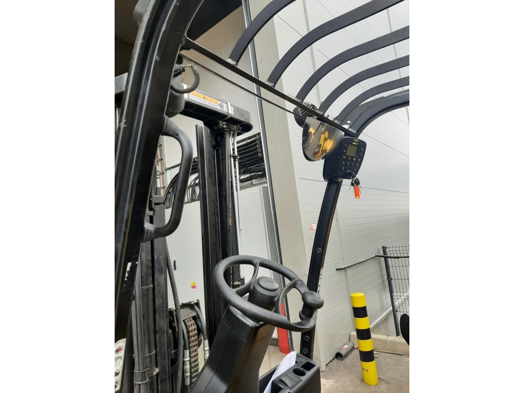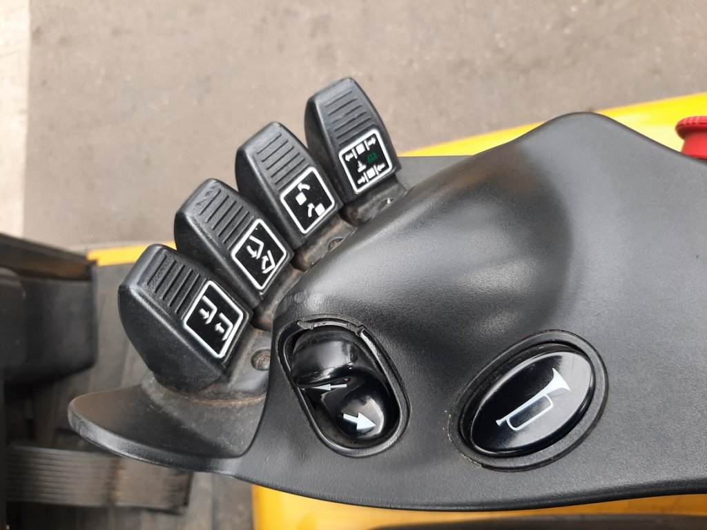 - Příslušenství: 4 hydraulické funkce, ovládání mikropáčky, integrovaný boční posuv, pracovní osvětlení (2+1), 2x blue spot, maják, panoramatické zpětné zrcátko, LED osvětlení na stožáru, ochranný rám řidiče, boční výměna baterie, externí nabíječ 8 hod.