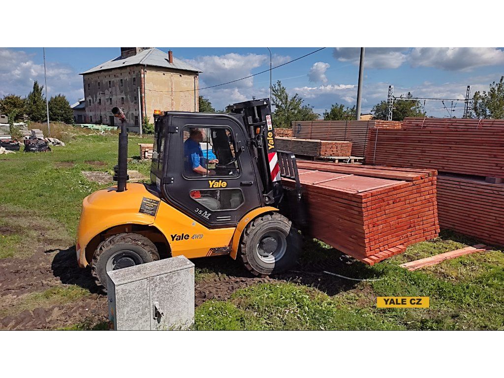Terénní vozík má vyšší světlost podvozku, která umožňuje snazší manévrování a pohyb v náročném terénu. Je vybaven velkými koly s hlubokým dezénem s kyvnou řídící nápravou, která jsou určena pro snadný pohyb ve ztíženém terénu a zajišťují větší stabilitu při manipulaci s břemeny.